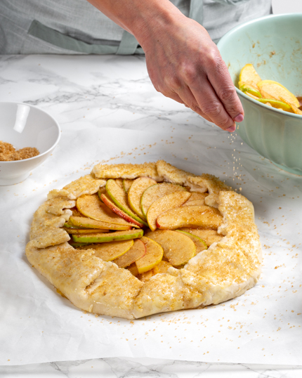 Préchauffer le four à 218°C (425°F) et tapisser de papier parchemin deux plaques à pâtisserie. La pâte à croûte doit être déjà prête. Pour une galette, suivre la méthode de notre recette de pâte à galette. Pour une tarte dans un moule de 9 pouces, suivez la méthode de notre recette de croûte à tarte.