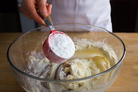 Incorporer la vanille. Ajouter ½ tasse de sucre à glacer à la fois, jusqu’à ce que la totalité des 1½ tasse de sucre à glacer ait été ajouté.