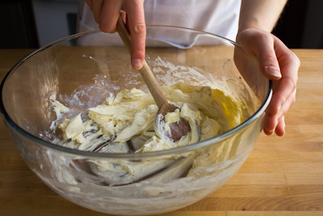 Battre le beurre et le fromage à la crème ensemble jusqu’à homogénéité.